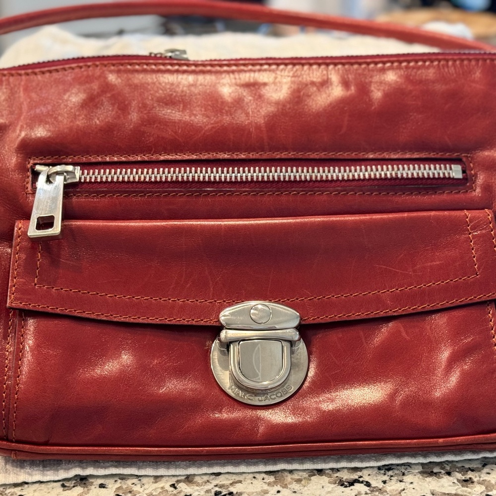 Red leather Marc Jacobs this purse has a lot of inside pockets as well as 2 on the outside of the bag