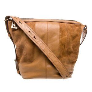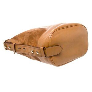 Gorgeous and hard to find, this vintage Marc Jacobs shoulder bag is crafted from buttery soft lamb leather with tonal suede paneling in a rich caramel tan. The slouchy silhouette, gold-tone hardware, and wide adjustable strap make it the perfect crossover between shoulder bag and hands-free crossbody. Interior is clean and exterior is in very good pre-owned condition. Rarely seen in this color and condition, with styling that moves effortlessly between city streetwear and western-chic.