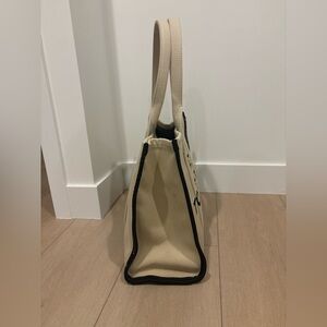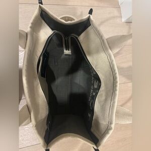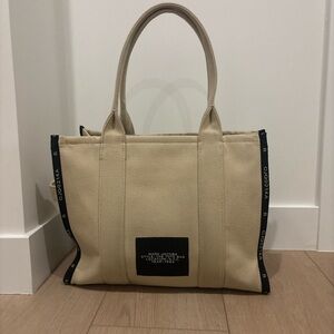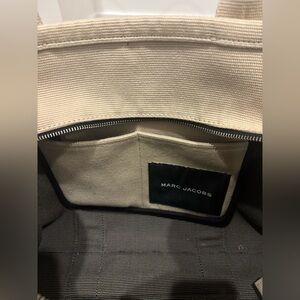 Stylish Marc Jacobs tote. Beige canvas material. Spacious interior with pockets.
