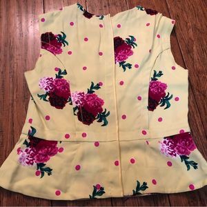 NWOT. Beautiful yellow rayon top with magenta floral pattern, from Marc Jacobs’ line with Bergdorf Goodman. Structured, with gold zipper up the back and peplum shape. Never worn, NWOT, in excellent condition. From a clean and smoke free home. Bundle and save! Offers always welcome.