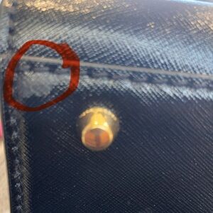 Some light scratches on gold hardware (please see pics; l marked them). There’s a few makes nothing major please see photos no stains otherwise.