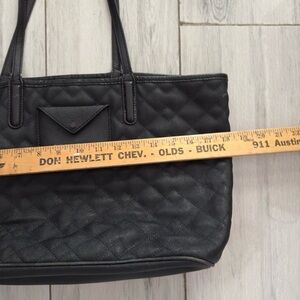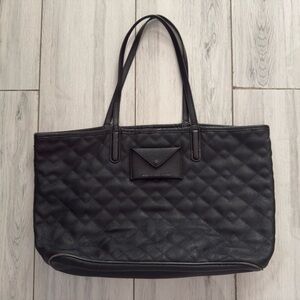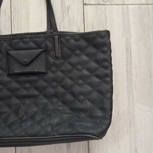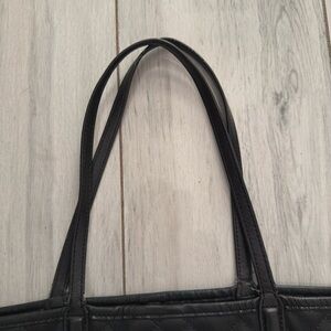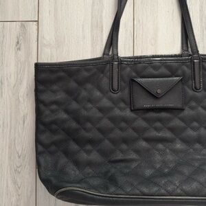 The Marc Jacobs Black Coated Leather Tote is a stylish and spacious bag designed for women. Made from high-quality leather with a coated finish, this rectangular tote features double black handles and a snap closure. The exterior color of the bag is sleek black, complemented by a black lining. With dimensions of 18 inches in width, 11 inches in height, and 10 inches in depth, this large tote is perfect for carrying your essentials in style. Designed by the renowned brand Marc Jacobs, this tote is a versatile accessory that adds a touch of luxury to any outfit. See all pictures to show wears