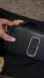 Stylish black crossbody bag with gold accents. Features a bold logo design.