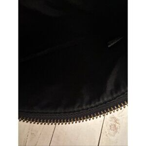 This is a Marc Jacobs Black Faux Leather Clutch measuring 7" in height and 10.5" in width. Made with black faux leather, this medium-sized clutch is preowned and in very good used condition. Note there are a few indents on the front.