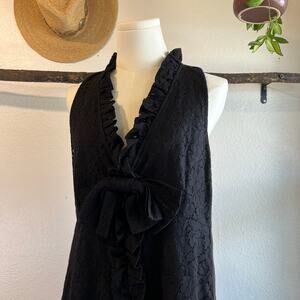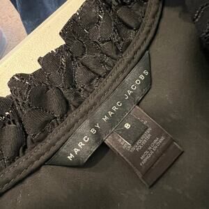 Marc Jacobs Black Lace Ruffled Bow V Neck Sleeveless Knee Length Dress Size 8