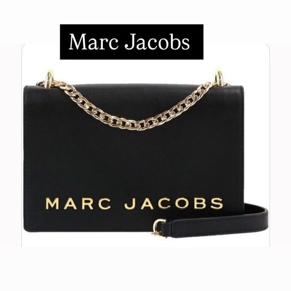 Elevate your style with this elegant Marc Jacobs bag. Featuring a sleek black design with luxurious gold accents, it's perfect for any occasion.