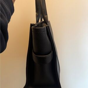Stylish black leather tote from Marc Jacobs. Ideal for daily use. Features sturdy handles and spacious interior. Never been used. Excellent condition. I am the only owner.