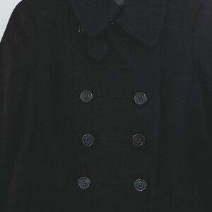 Elegant black pea coat. Double-breasted design. Classic and versatile.