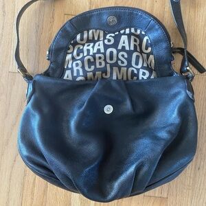 Marc Jacobs Black Pebbled Leather Crossbody Bag Workwear Classic I. Great pre owned condition. Some discoloring on front flap in pictures but otherwise great quality