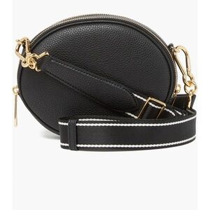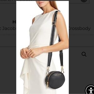 Sleek black crossbody bag by Marc Jacobs. Pebbled leather finish. Gold-tone hardware accents. Adjustable strap for comfort.