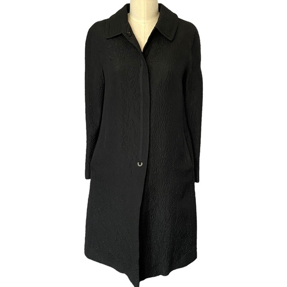 Marc Jacobs Black Textured Silk Blend Coat Snap Front Long Jacket Small
