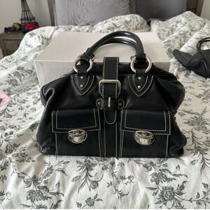 The Marc Jacobs Venetia Satchel Bag is one of those iconic Marc bags that we will cherish forever. It features beautiful calfskin leather, a spacious interior and silver metal hardware which all add up to make this more than just a place to put your stuff. Retail price is $1025.Inside is slightly dirty. please review all photos