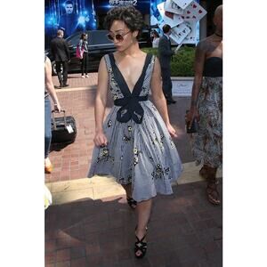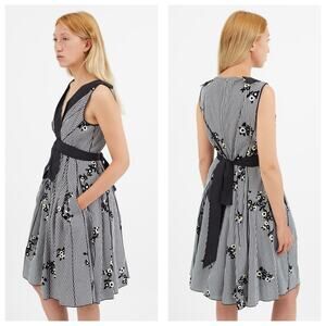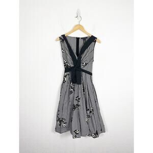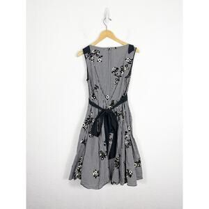 $400 Marc Jacobs Black & White Gingham Floral Dress Size 6 Fit & Flare Sleeveless