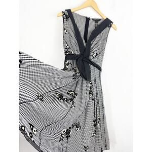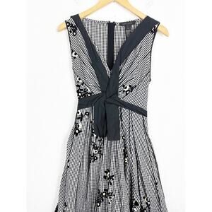 Marc Jacobs Black & White Gingham Floral Dress Size 6 Fit & Flare Sleeveless