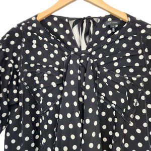 Chic polka dot design. Features a bow detail. Short sleeves. Perfect for any occasion.
