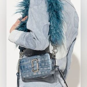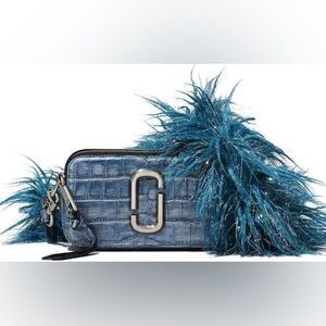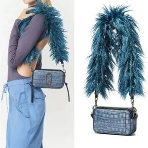 Marc Jacobs Blue Leather Croc Embossed Fur snapshot Crossbody Bag camera bag NWT