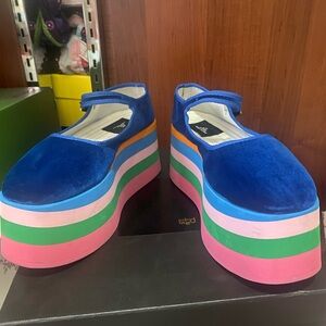 Vibrant blue velvet platform Maryjane’. Super great condition only worn 3 times. Does not come with original box. Let me know when if you have any questions. No cancellations.No returns🤙🏼⭐️