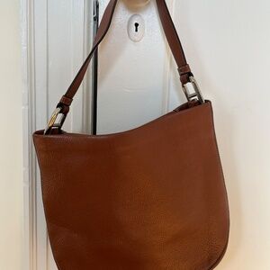 Elegant brown leather tote. Features a sleek design. Perfect for everyday use.