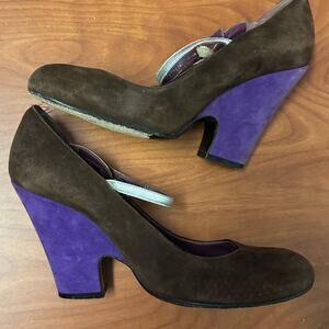 Marc Jacobs Brown Purple Mary Jane Heels Color Block Metallic Accents Size 37