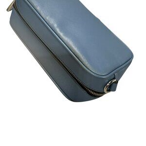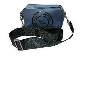 The Marc Jacobs Calfskin Signet Flash Bag in blue is a stylish and versatile crossbody bag perfect for casual and travel occasions. Made of luxury leather with silver hardware accents, this medium-sized bag features a solid blue exterior with a zip closure. The adjustable crossbody strap adds a touch of sophistication to the overall look, making it a chic accessory for any woman's wardrobe. The Marc Jacobs brand ensures high-quality craftsmanship and timeless style in this Camera Bag model.