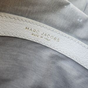 Marc Jacobs Chain Strap White Shoulder Bag Large Satchel Gold Logo Plate Leather