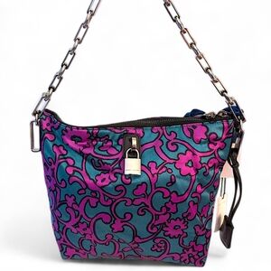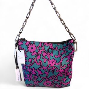 Turn heads with this ultra-rare Marc Jacobs Collection shoulder bag from the Fall/Winter 2009 runway line. Crafted in the bold and baroque “Rose Turquoise” floral print, this large-format beauty is a true collector’s piece. Finished with luxe details and never carried – new with original tags attached.