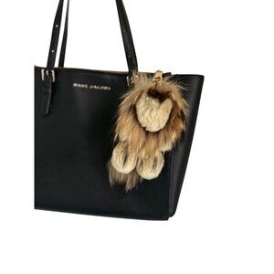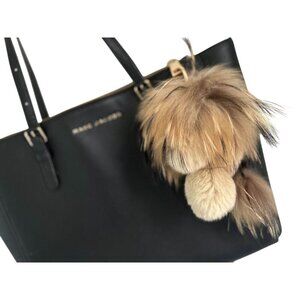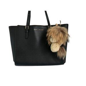Marc Jacobs Commuter Leather Tote Black Lion Fur Toy 14" x 11"