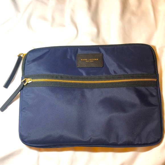 Marc Jacobs Computer Sleeve Bag in Blue Nylon, Black Trim and Gold Hardware. Like New.