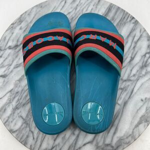 MARC JACOBS COOPER WEBBING SLIDE 35 (US 5) AQUA POOL LOGO ACCENT RUBBER SOLES