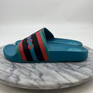 Marc Jacobs Cooper Webbing Slide 35 (US 5) Aqua Pool Logo Accent Rubber Soles