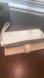 Chic cream wristlet by Marc Jacobs. Features a minimalist design with a convenient wrist strap. There are what I believe to be lip gloss smudges on the front and the rear of the wallet. I have tried to get them off I have not been successful and don't want to use anything that may damage the material.