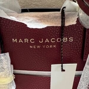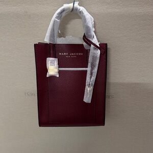 Elegant Marc Jacobs handbag in deep red. Sleek and versatile design.