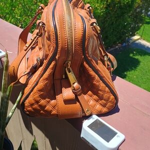Marc Jacobs 'Emily' Bowler Satchel in Caramel Brown Quilted Leather