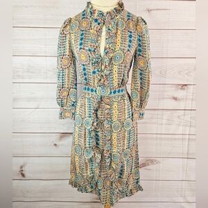 Marc Jacobs Floral and Paisley Print Ruffle Silk Dress in Cream and Green Size 6