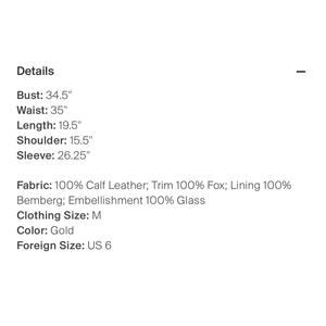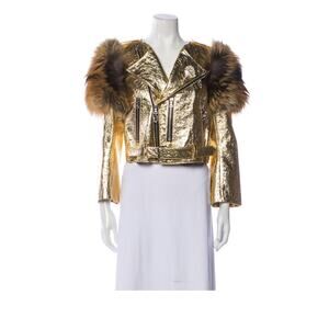 Marc Jacobs Fox Fur Leather Jacket Gold Sequin Lips Lil Kim Medium 6.