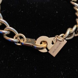 Detailing looks like two small handcuffs linked to each other. There is a tag that says Marc Jacobs. Condition is fair. There is no clasp, to put on it just slides on.