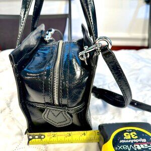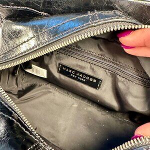Add a bold edge to your outfit with this stunning Marc Jacobs Gotham Mini Tote in distressed/crinkled black leather, accented with signature silver-tone grommets and zipper details. This compact yet structured mini satchel offers both fashion and function—wear it crossbody for hands-free convenience or carry it by the top handles for a polished look.