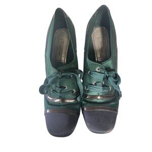 Marc Jacobs Green Satin Lace-Up Block Heel Shoes EU40 / US 9-9.5 FLAWED