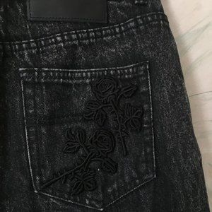 Bought these and they fit me! These Marc Jacob Mickey Mouse Acid Wash jeans are high-waisted with a straight cut. There's a bit of stretch to them and are perfect for curvy bodies with a small waist and thick thighs. I'm saying good-bye to these beauties because I can't pair them with anything in my closet. Took the tags off because I thought I would wear them but I never did