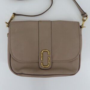 Marc Jacobs Interlock Beige Pebbled Leather Courier Messenger Crossbody Purse