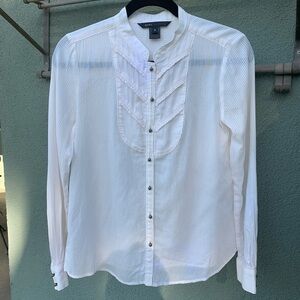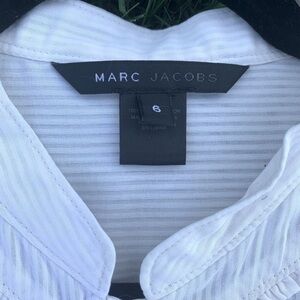 Very nice pre-owned Marc Jacobs light cotton blouse. Round metal buttons down the front and on the cuffs. Flattering bib design.