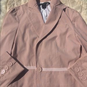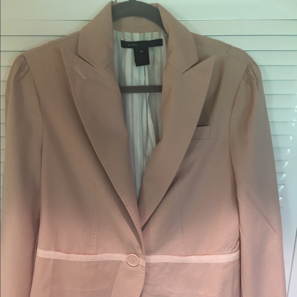 Beautiful Marc Jacobs champagne/dusty rose jacket size 10, adjustable drawstring in the back, fully lined , tuxedo collar and 4 button sleeve .