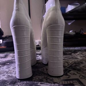Currently doing a closet clean out The item listed for sale are Marc Jacobs Croc Embossed KiKi Boots in White.