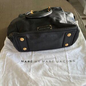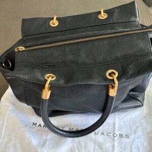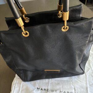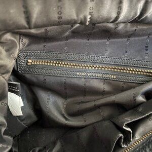 All leather Marc Jacobs tote bag. Large enough to carry a laptop. Great for work, travel, or everyday use. Zipper top closure. Interior logo lining, interior zip pocket, plus 2 open interior pockets. Dust bag included. Separate long strap not included.