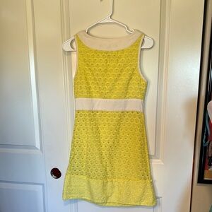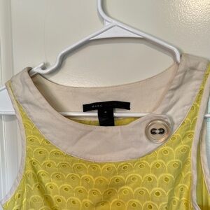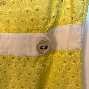 Vibrant lemon dress with ivory trim. Features stylish button accents. Ideal for warm weather.
