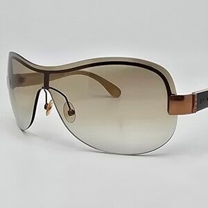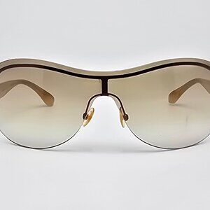 This listing is for authentic Marc by Marc Jacobs MMJ028/S 0FEPS2 Bronze Brown Frame Light Brown Gradient Lens Rimless Shield Sunglasses 99-01-120 RARE. Sunglasses are in fair pre-owned condition, lens has some scratches (see photos). Listed price is reflective of item condition. Size: 99-01-120. Made in China. Please see pictures to make your complete condition assessment.