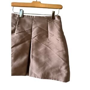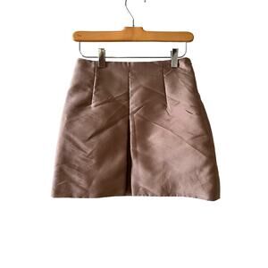 New Marc Jacobs Metallic Bronze Inverted Pleat Mini Skirt, size 0. This muted bronze mini skirt has a side zipper and tab closure. No material tag present but feels like a poly blend. Pair with tights and a sweater to show off your boots this fall!