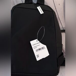 A mini backpack with textile straps offers compact and hands-free style in an instant.
