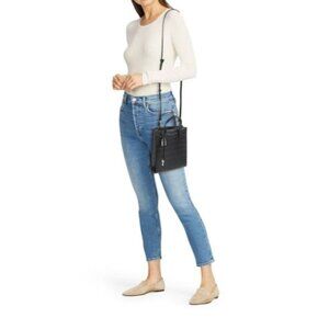 NWT MARC JACOBS Mini Croc Embossed Leather Tote, Black & Silver