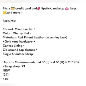 🔹️ Marc Jacobs🔹️ Mini red Crossbody bag ✨️❤️